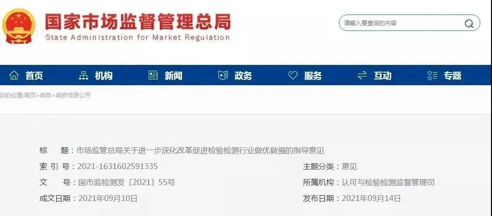 市場監(jiān)管總局關(guān)于進(jìn)一步深化改革促進(jìn)檢驗檢測行業(yè)做優(yōu)做強的指導(dǎo)意見