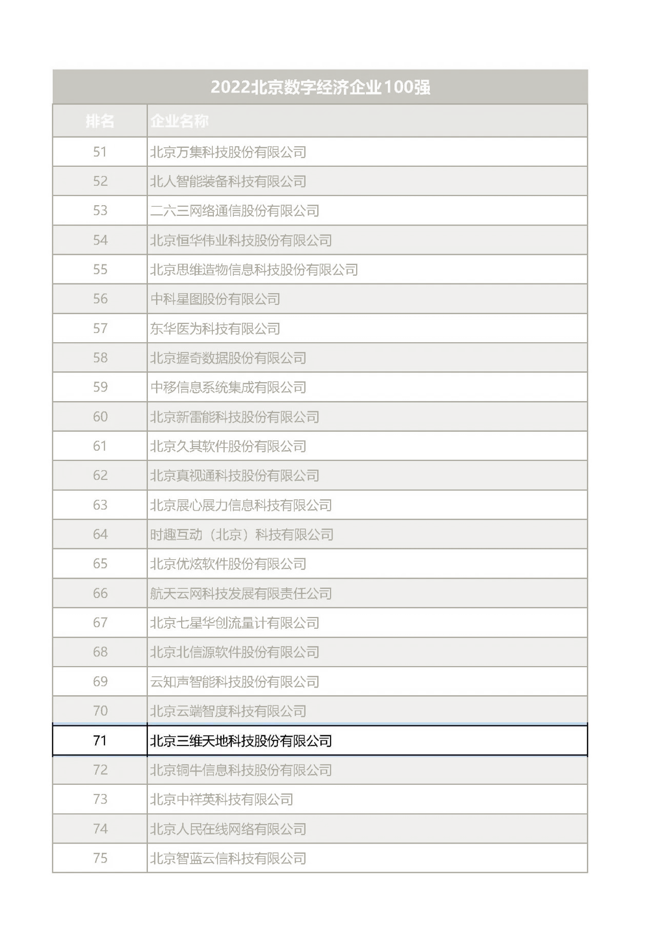 百強企業作為北京企業的優秀代表,是北京市打造國際創新中心的重要力量,是全市推動創新發展的骨干力量,也是首都高精尖產業的重要支撐。作為北京高新技術企業與上市公司的一份子,三維天地主動融入國家發展大局,把握時代發展機遇,繼續踐行自主技術創新與研究,持續推進并助力各行業客戶的信息化建設與發展,創造更多的產業價值和社會價值。