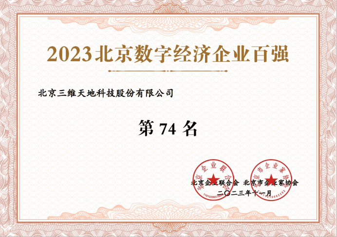 持續蟬聯!三維天地入選2023北京數字經濟企業百強榜單