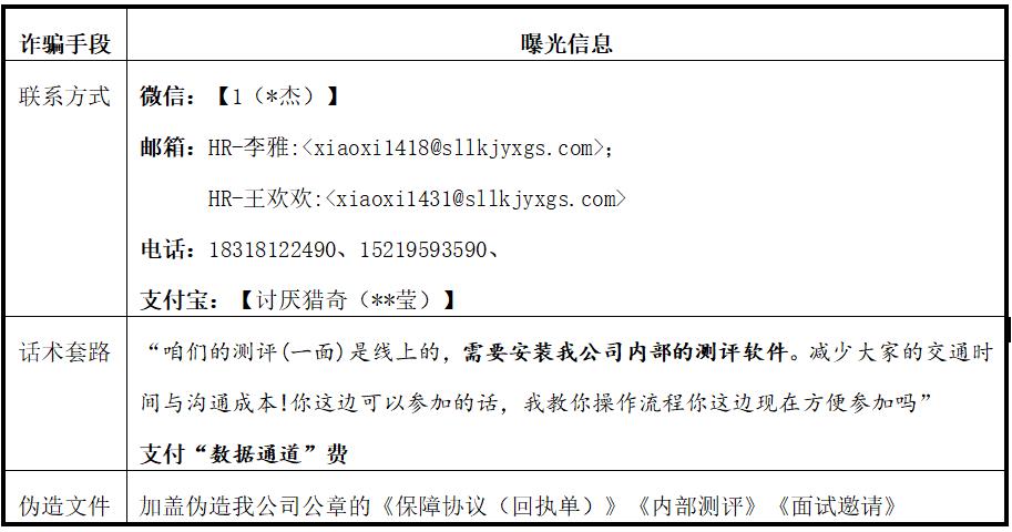 以上信息均為詐騙分子偽造請廣大求職者提高警惕,切勿輕信!