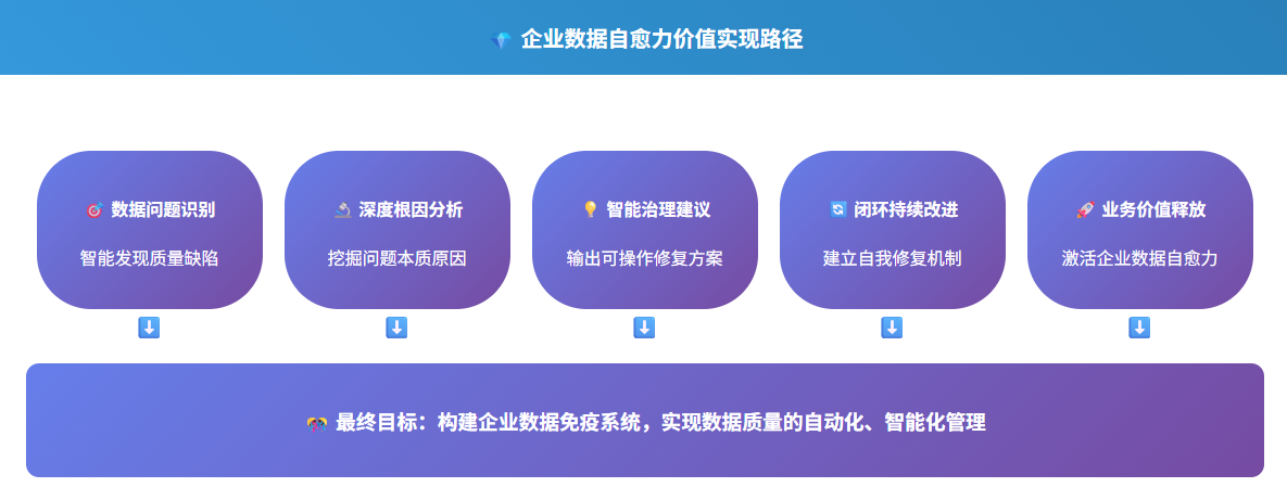 (1)智能驅動:智能體充當自動化檢測的核心引擎,能夠自主完成多維度的質量檢測工作。智能體自動執行多維度質量檢測(完整性 / 準確性 / 一致性 / 時效性),擺脫了對人工手動檢測的依賴,大幅提升檢測效率與覆蓋范圍。?