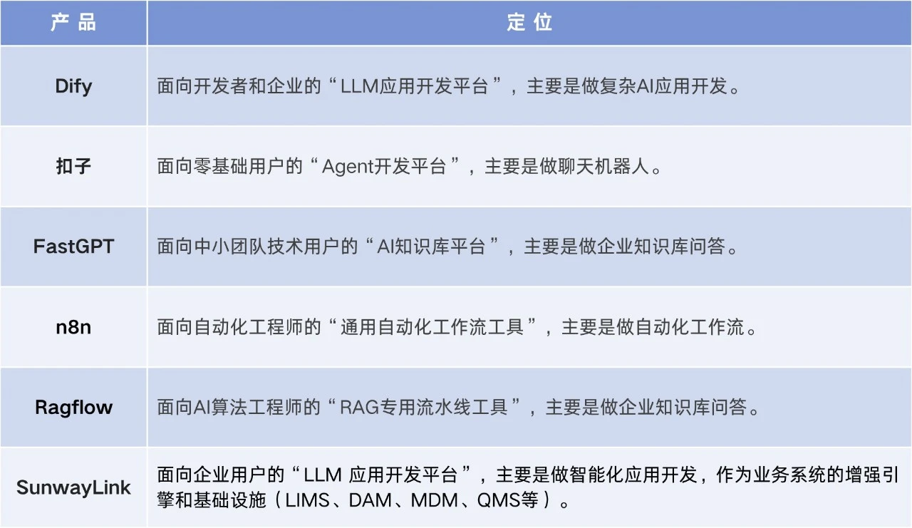 AI應用開發平臺,Dify、扣子、FastGPT、n8n、Ragflow、SunwayLink怎么選?